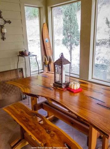 My step-dad, an accomplished wood-worker, handmade this beautiful dining table from local cedar as well: